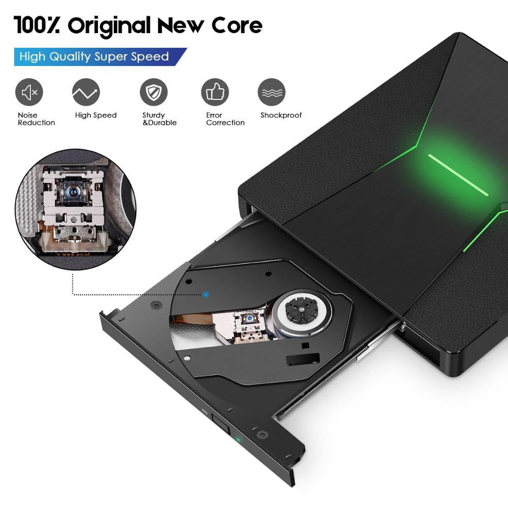 Review KuWfi USB 3.0 Type C Portable High-Speed DVD+/RW Burner With Colorful Light DVD Dirve Player For Ma