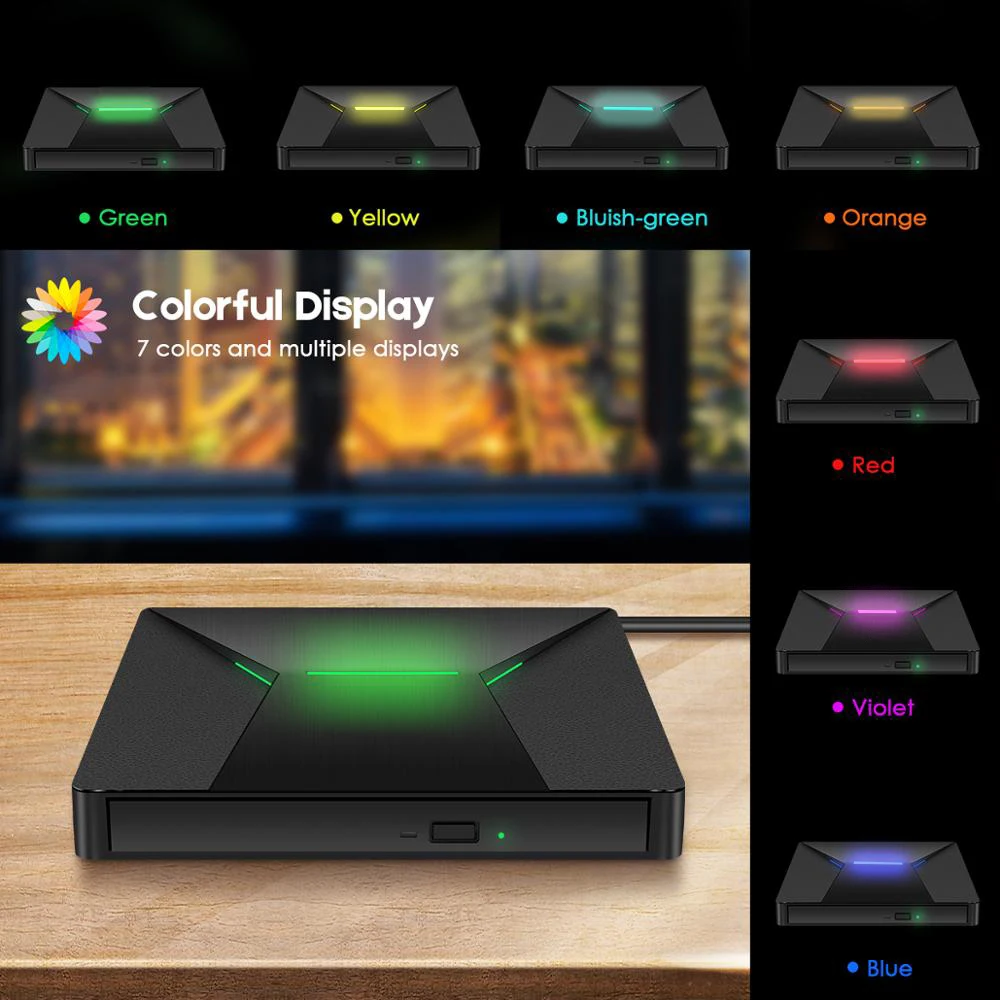 KuWfi USB 3.0 Type C Portable High-Speed DVD+/RW Burner With Colorful Light DVD Dirve Player For Ma
